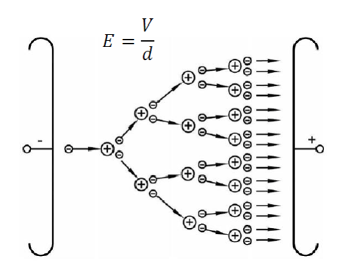 위 사진은 타운샌드 메커니즘이라는 플라즈마 형성 메커니즘입니다. 물리전자공학을 배운 전자공학도 학생이라면 avalanche breakdown이라는 것을 배웠을 텐데, 이와 매우 유사한 과정입니다. 챔버에 가스를 넣고 강한 전압을 인가하면, 전자가 가속되며 원자핵과 충돌을 일으키고, 충격을 받은 원자핵은 다시 원자핵과 전자로 분리됩니다. 이런 식으로 가속과 충돌을 거듭하며 플라즈마를 형성하는 메커니즘인데, 이때 전자의 가속과 관련된 공식이 아래의 mean free path입니다.